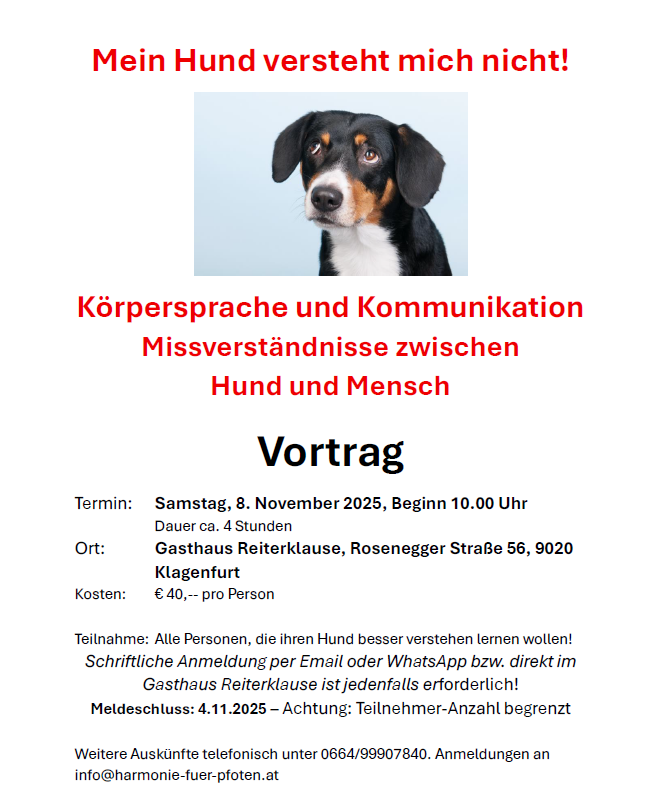 Harmonie-für-Pfoten bietet professionelles Hundetraining (ÖKV-Trainer) nach tierschutzkonformen Methoden.